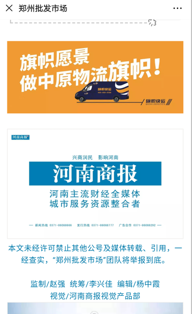 據分析,在此次合作中,旗幟快運正因為有著深厚的基礎條件,才為此次合作取得又一步的推進,一個活廣告可不是那么好做的,不僅要邁進來,更要走出去。這也是河南商報的所看到的旗幟快運不一樣的地方。